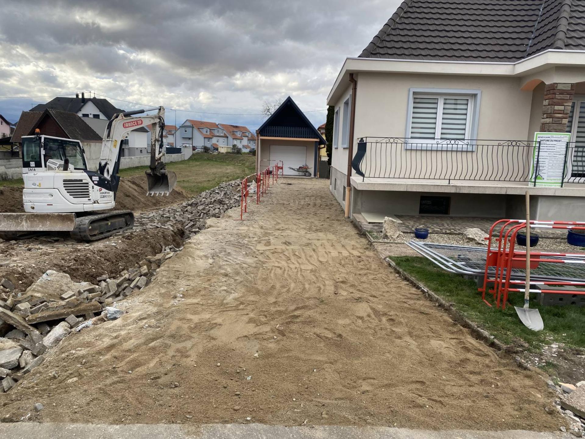 Voici le travail opéré par nos experts pour l'aboutissement de l'entrée d'une maison en pavé à Haguenau dans le nord du Bas-Rhin :